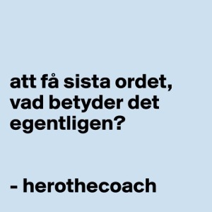 Jag känner igen mig. Har haft ett stort behov av att få sista ordet, under merparten av mitt liv. Känner efter, och funderar över var det kom från. Känslan av att vara betydelsefull? Kanske med ett inslag av besserwisser? Att få sätta punkt och därmed känna att jag är i kontroll? Självhävdelsebehov?