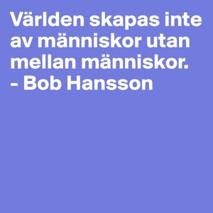 Bob snackar om att världen inte skapas av människor utan mellan människor. Så har jag aldrig uttryckt mig, men det slog an något i mig när jag hörde det. Jag skrev ned det i blogg-inspirations-högen.