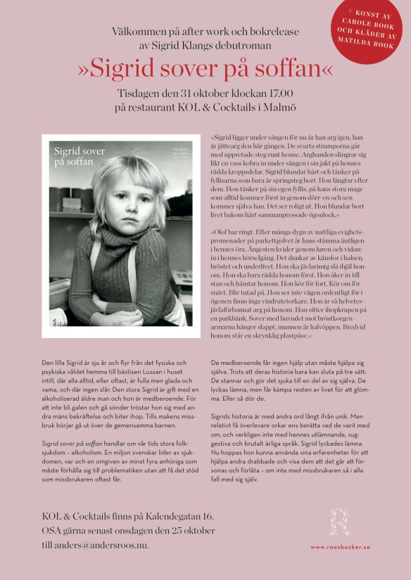 Ja, inte min bokrelease alltså, det dröjer lite tills jag har en sådan (igen). Det är boken ”Sigrid sover på soffan” av Sigrid Klang som släpps om ett par dagar och vars boksläpp du är varmt välkommen till: