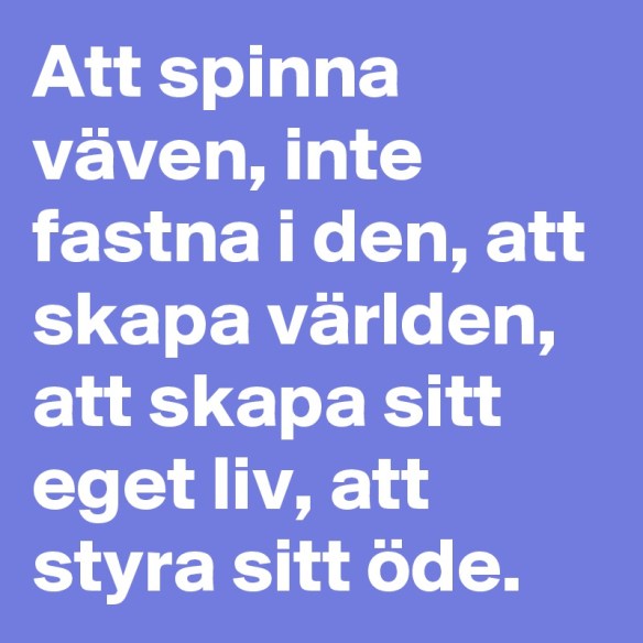 Om att vara människa – ja. Det där är något som dyker upp om och om igen i min värld just nu. Hur gör jag, när jag är människa? Kanske blir det lättare att vara människa, om jag blir bättre på det varandet? Hur jag relaterar till mig, och till dig? Hur bra mitt görande kan bli, när jag, i mitt varande, är mitt bästa jag? Och är det kanske med det lärandet, utforskandet, experimenterandet, som jag bidrar på bästa sätt till världen? Kanske inte. För som änglarna svarade, människan besitter i sanning förmågan att vara både en välsignelse som en förbannelse: Enligt en judisk legend sammankallade Gud änglarna för att få råd om människan skulle skapas eller inte. Vissa änglar svarade ja, andra sa nej. Änglarna kunde inte enas och medan de fortsatte att strida inbördes fattade Gud ensam beslutet och skapade människan.