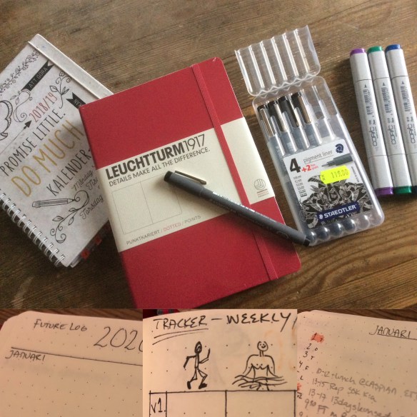 Sen har det där så sakteliga smugit sig på mig, inspirerad av bland annat Dorro.se som är både pedagogisk, inspirerande och skicklig i sitt BuJo:ande. Smått frustrerad med mina digitala kalendrar där gremlins ställde till det för mig (inbokade aktiviteter som försvann, elelr bytte tider stup i kvarten) gjorde att jag i lagom till sommaren kände för att skaffa mig en analog kalender, och letade då efter en smyg-BuJo, utan större framgång. Med smyg-BuJo menar jag en kalender med en kombination av för-i-fyllda års- och månadsupplägg med tomma sidor däremellan. Den jag hittade har i alla fall lyckats få mig över tröskeln, till att nu ha skaffat mig en Leuchtturm1917, en vackert djuprosa/cerise dylik.