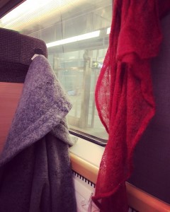 Så nu sitter jag på tåget, och vilar i förflyttandet. Kappan börjar torka efter cykeltur i regn till centralen.
