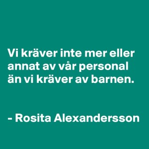 I samband med vårens första session med den pedagogiska ledningsgruppen för Skurups Förskola, bestående av förskolechefer och enhetsutvecklare, sa Rosita Alexandersson, en av förskolecheferna: Vi kräver inte mer eller annat av vår personal än vi kräver av barnen.