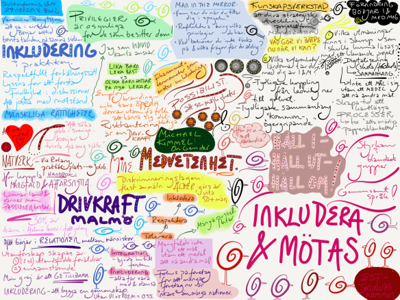 Och sen var det slut efter avtackning av projektteamet som med den äran genomfört en riktigt bra slutkonferens men än viktigare: roddat hela detta projekt av modell större i hamn. Det har varit en ynnest att vara en del i projektet (på många olika vis!) och det är min absoluta förhoppning att lärdomarna från Inkludera & Mötas fortsätter sprida ringar på vattnet under lång tid framöver.