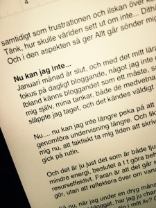 Nu…. nu kan jag inte längre peka på att jag är så upptagen, att jag jobbar 10-15 timmar per dygn för att förbereda och genomföra undervisning. Och likförbaskat så har jag ännu så länge bara bloggat sporadiskt. Det krävs mer av mig nu, att faktiskt ta mig tiden att skriva, lägga ut, dela vidare, dagens blogg, än innan, då det mer eller mindre gick på rutin.