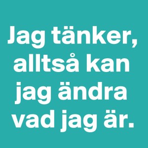 ”Vad man har upptäckt om tänkande, hjärna och självkontroll låter oss gå vidare från [Descartes tes: cogito, ergo sum] till ‘Jag tänker, alltså kan jag ändra vad jag är’. För genom att ändra hur vi tänker kan vi förändra det vi känner, gör och blir. Om det leder till frågan ‘Men kan jag verkligen förändras?’ svarar jag med George Kelleys ord till terapiklienter som frågade honom om de kunde få kontroll över sina liv. Han brukade se en sådan klient rakt in i ögonen och säga: ‘Skulle du vilja det?'”