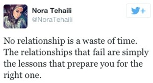 Nora i tweeten, med det undantaget att jag inte ser det som att relationer misslyckas, utan snarast som att lärdomen är uppsnappad, och det är dags att gå vidare, att säga Ciao, som ju betyder både hej och hej då. Ett hej då till något eller någon, möjliggör ett hej till någon eller något annat!