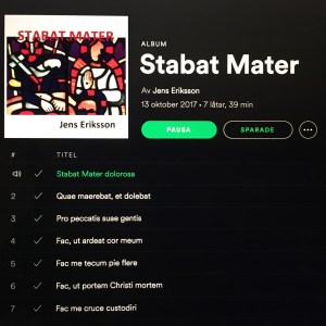 Han är en så ofantligt skicklig kompositör, och jag blir tårögd (ovanpå tårarna som redan trillar) av tacksamhet för att jag får ynnesten som körsångerska, att se honom in action, att få sjunga hans kompositioner, ja, till och med att emellanåt vara delaktig i processen, som när han skrev Stabat Mater till oss. (Ja, det fattar väl jag att det inte var till oss, som så, men… samtidigt. Så var det det. Vi skulle framföra en långfredagskonsert påsken 2016, så då skrev han ett Stabat Mater. Till oss. Till församlingen. Till världen.)