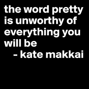 Upworthy visar Kate Makkai som deltar i en nationell poetry slam 2002 i USA och gör det så bra så det nästan är löjligt. På dryga tre minuter sliter hon sönder och samman den ytliga livsstil vi skapat oss. Det liv där hudens ytfinhet, näsans storlek och tändernas vita perfekta rader är viktigare än att jag ser mitt egenvärde.