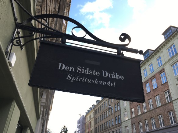 Anlände lagom till lunch, och när vi ätit oss mätta tog vi en promenad. Första anhalt Jægersborggade, som vi knatade upp- och nerför och tog oss in i en räcka olika udda butiker. Den Sidste Dråbe var inte en av butikerna vi besökte, men jag lockades att fotografera deras skylt, för vilket perfekt namn på en Spiritushandel!